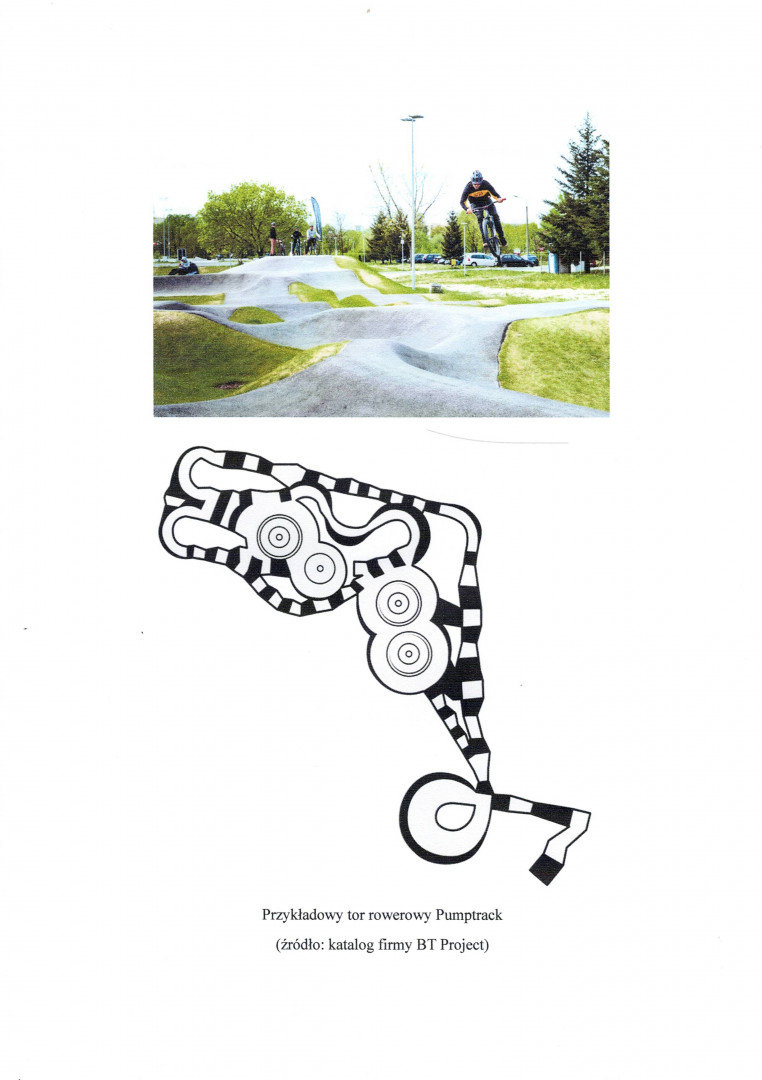 Pumptrack to specjalnie zaprojektowany tor przeszkód, który składa się z garbów profilowanych, zakrętów  oraz „hopek”  ułożonych w takiej kolejności, aby się można było poruszać i utrzymać prędkość  bez konieczności  pedałowania. Prędkość nabiera się wykonując ruchy góra-dół (tzw. pompowanie), po torze porusza się wykorzystując siłę ciężkości i siłę odśrodkową. Jest to sport, który zyskuje coraz większą popularność wśród młodzieży. Odpowiednio przygotowany tor pozwala im rozwijać ich pasję w bezpieczny sposób. Ponadto jest on przeznaczony dla całych rodzin, ponieważ dzięki odpowiedniemu profilowaniu trasy możliwy jest przejazd na zróżnicowanych prędkościach zarówno dla małych dziecięcych rowerów, jak i dużych rowerów górskich. Ponadto proponuje się montaż ławek, koszy na śmieci, tablicy informacyjnej